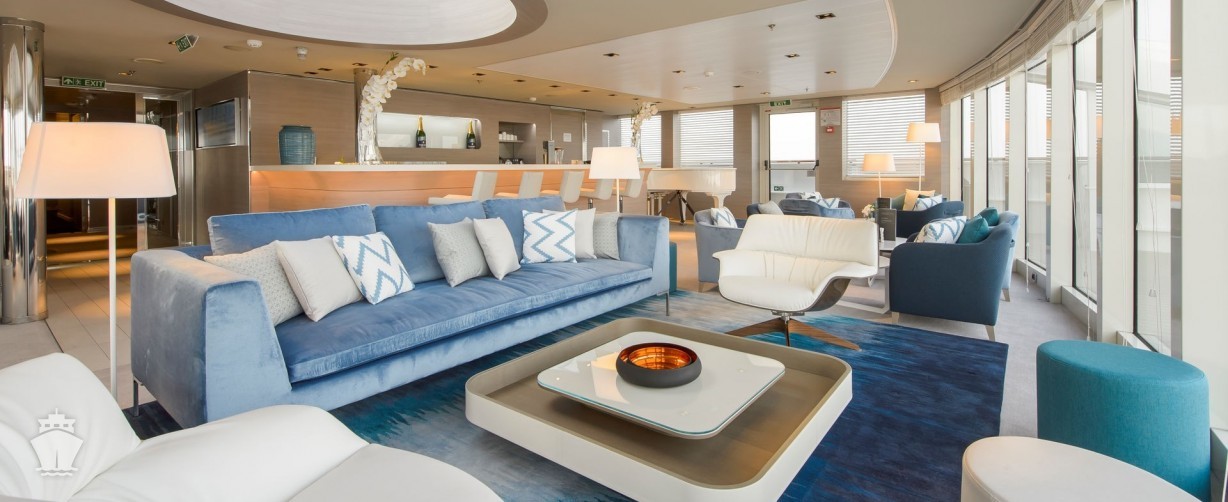 Na palubě najdete několik salony a bary: hlavní lounge, panoramatický lounge, intimní piano-bar s jedinečnýnm výhledem a bar na vnější palubě u bazénu.