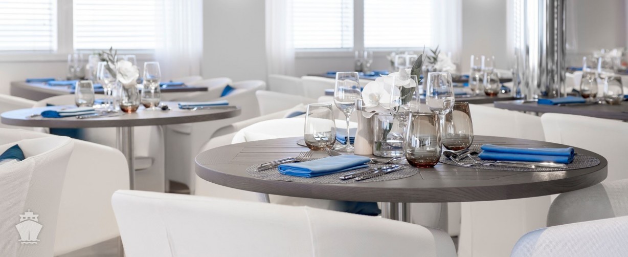 Pravá francouzská cuisine připravena francouzskými šéfkuchaři. Výhradně čerstvé ingredience a vysoce-odborná příprava zaručují výjimečnou kulinářské úroveň. Snídaně jsou formou bufetu nebo si je můžete dát přinést do kajuty. Oběd je ve formě bufetu a večeře ve francouzském stylu se podává v restauraci. Během celého dne jsou k dispozici káva, čaj a malé občerstvení.