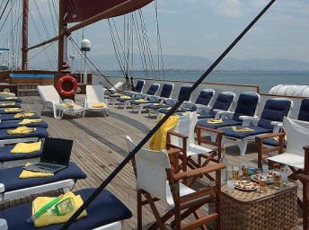 Spropitné: I když není povinné, doporučuje se € 10 na osobu a den. Na konci plavby dostanete do kajuty obálku pro tento účel.