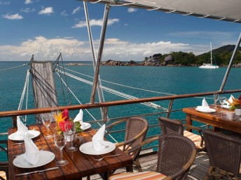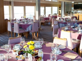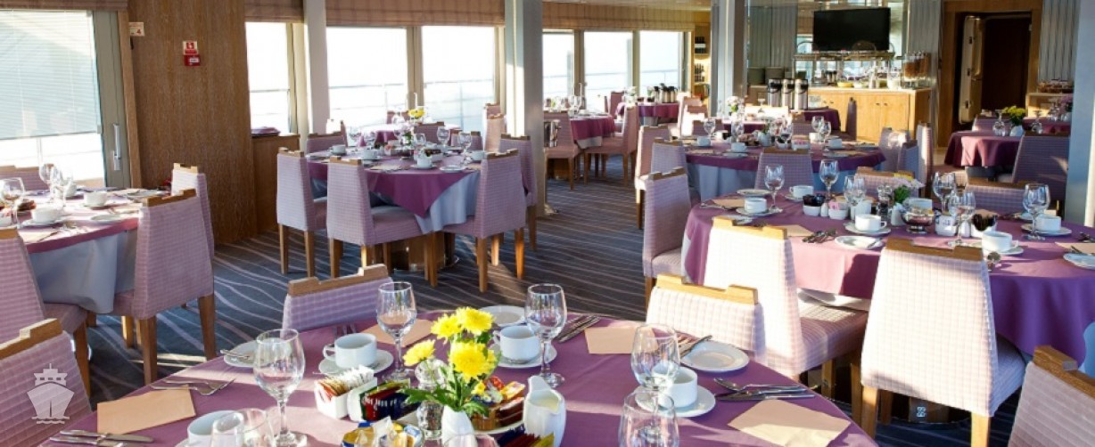 Snídaně - bufet v restauraci nebo, pokud je pěkné počasí, a dle požadavků, na otevřené horní palubě. Oběd formou bohatého bufetu na horní palubě. V průměru dvakrát týdně se koná barbecue přímo na palubě nebo na břehu. Večeře se podávají v jídelně, a la carte, bez stanoveného zasedacího pořádku.