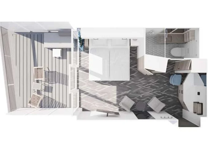 | VEKO - Kajuta s terasou 20 m² + balkon 13 m² se židlemi a váľandou. 15. paluba. Max 2 osoby. | 84 195 Kč 84 195 Kč za osobu | ||