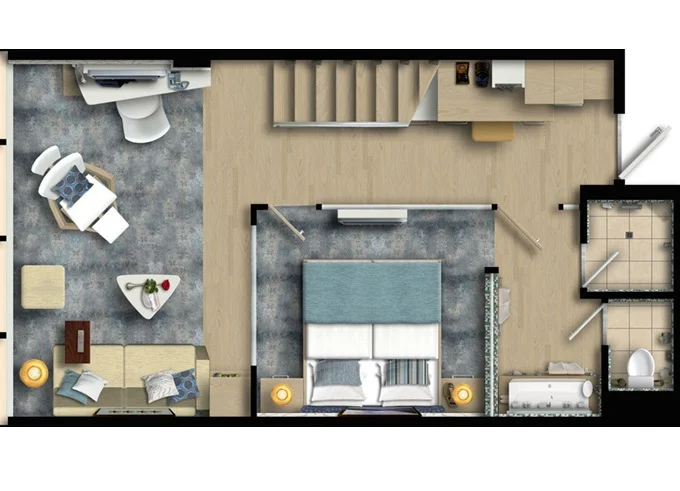 | SUHO - Himmel & Meer Suite 40 m² + prekrytá terasa 29 m² v patře se stolem, lehátky a s houpací sítí. Ložnice s obývací částí a jedálenským kútom. 14. paluba. Max 4 osoby. Výhody Suite. | 119 397 Kč 29 849 Kč za osobu | ||