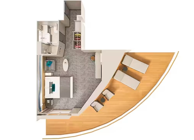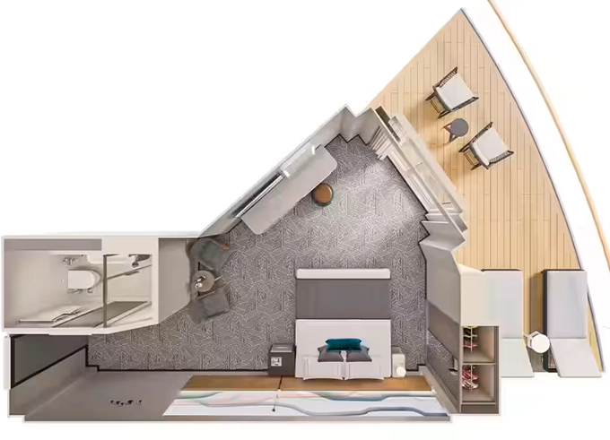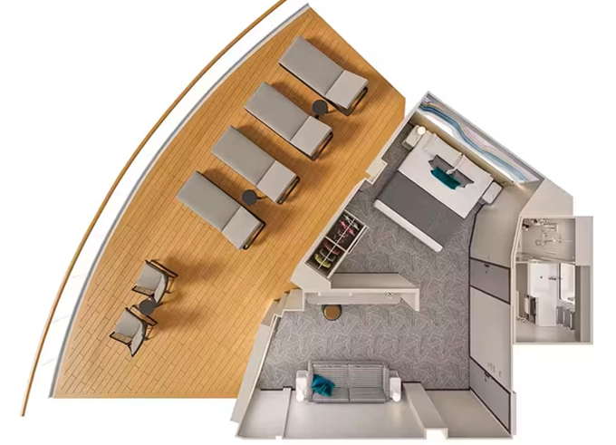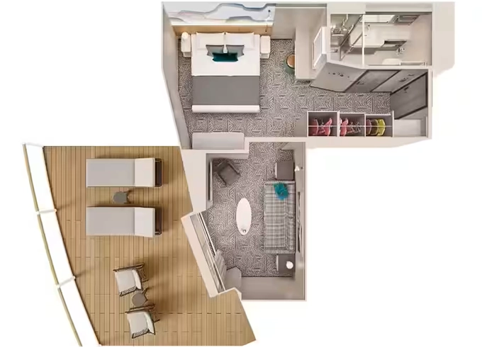 | H5 - Apartmá The Haven Owner's Suite s velkým balkónem 40-45 m² / balkón 10-12 m². 12. paluba, Max 4 osoby. Výhody The Haven | 349 952 Kč 174 976 Kč za osobu | ||