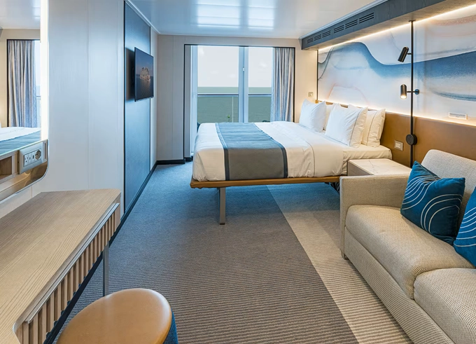 | SI - Suite s velkým balkónem na zádi 24 m² / balkon 19 m². 9. paluba - vzadu. Max 2 osoby. Výhody Suite. | 211 086 Kč 105 543 Kč za osobu | ||